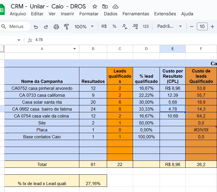 Quais campanhas traziam leads mais qualificados (ex.: bairro de Fátima → 33% qualificação).